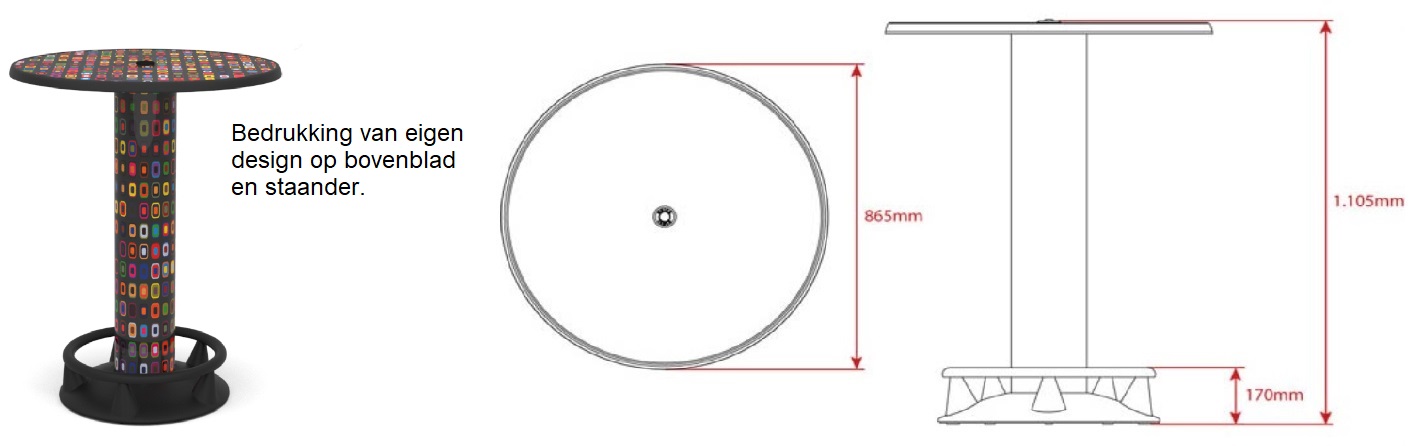 Statafel Quick- bedrukte staander en blad - 110 cm hoog - blad diameter 85 cm