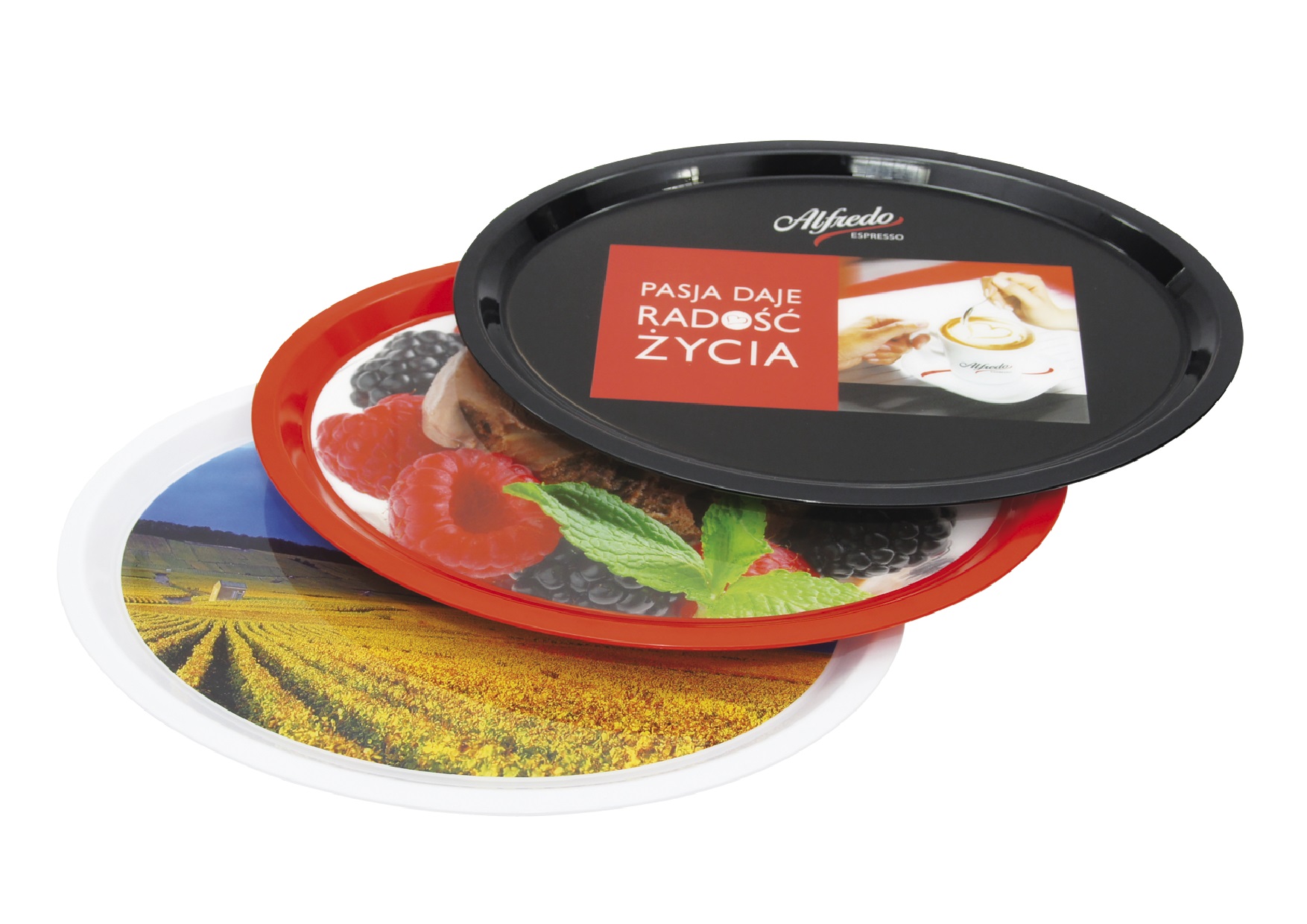 Dienbladen + bedrukte bodem en rand + antislip - rond 320 mm, rand 40 mm
